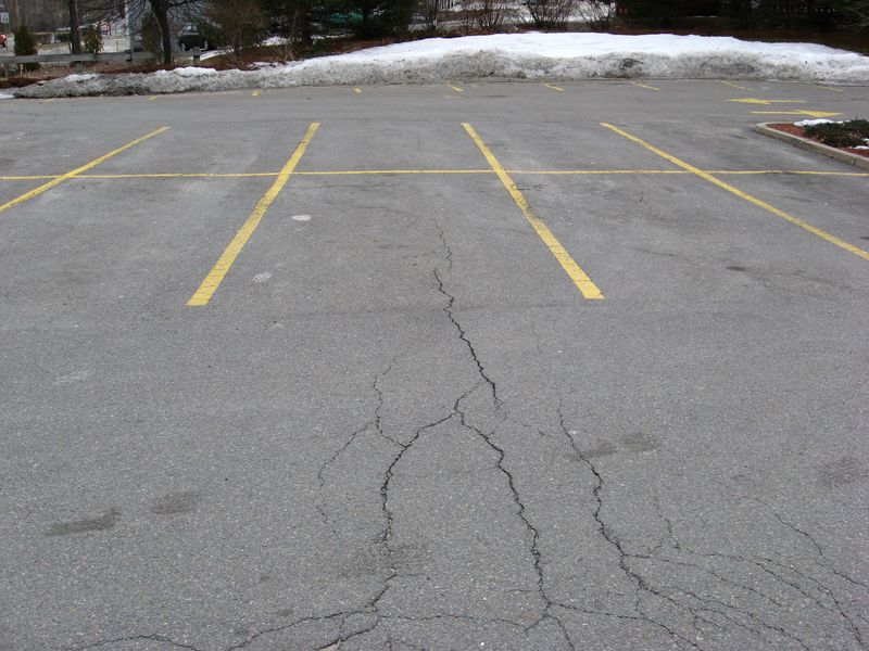 We use coated salt to treat driveways and parking lots. Coated salt works down to temperatures below -20°. Rock salt only works down to 18°. It's environmentally friendly and offers virtually no cleanup in the spring saving you money on cleanup costs. Pictured below are two commercial parking lots at the end of the 2007 winter season which saw snow fall totals over 50". Both lots required multiple treatments throughout the season. The parking lot in fig. 1 was treated with coated salt while the parking lot in fig. 2 was treated with traditional sand.